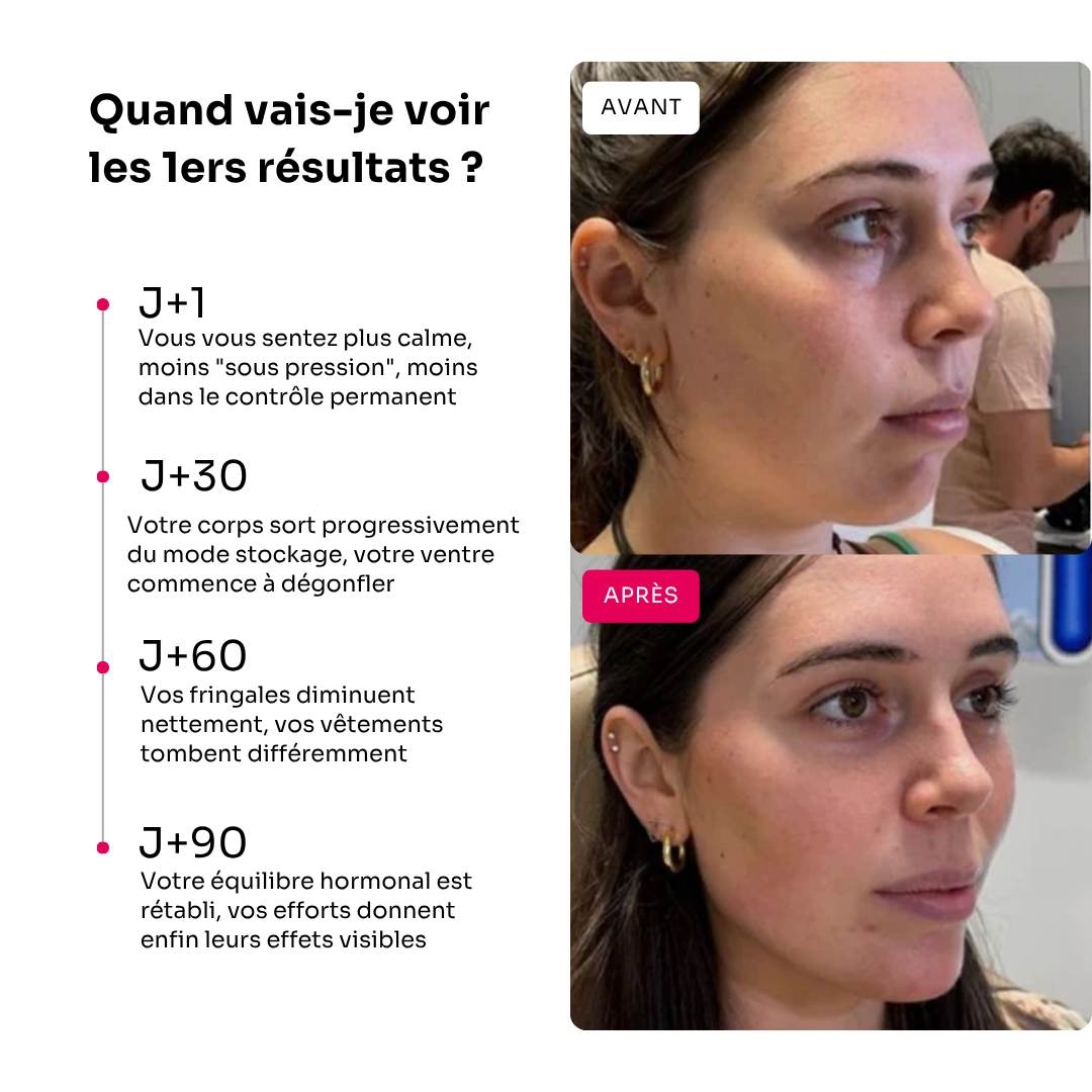 Je prenais Cortisol Manager pour le ventre, surtout. Mais c'est sur mon visage que j'ai vu la différence la plus rapide. En 2 semaines, mes joues étaient moins rondes, mes paupières moins lourdes. Bonus inattendu et vraiment agréable.