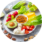 La cellulase contribue à la dégradation de certaines fibres présentes dans les crudités, légumes et céréales complètes.